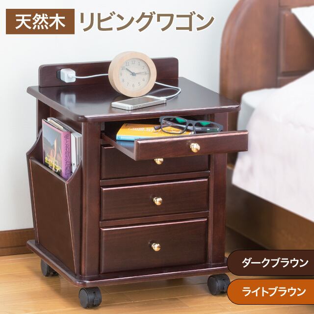 天然木リビングワゴン(コンセント付き)