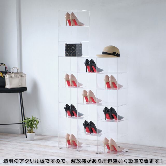 アクリリック シューズラック 2個組は、シンプルで清潔感のあるデザインが魅力。靴好きな方にも、お洒落なインテリアをお楽しみいただけます。ぜひ、このシューズラックでお部屋の片付けを快適にしてみてください。