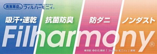 ●素材/[側生地]ポリエステル100%(ピーチ加工)、[中材]中綿1層目:蓄熱アルミシート・ポリエステル100%、中綿2層目:シンサレートウルトラ・ポリエステル55%・ポリプロピレン45%、中綿3層目:東洋紡フィルハーモニィ(ポリエステル100%)
