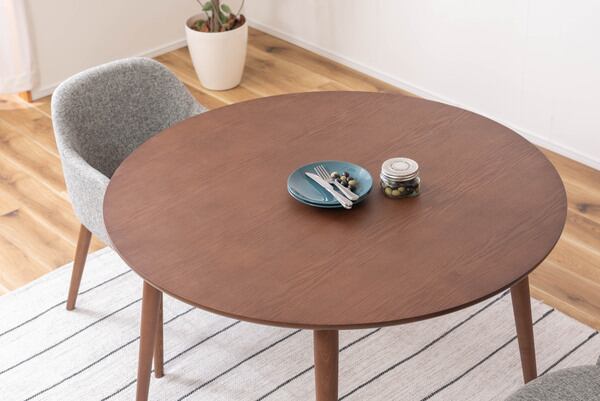 カラメリダイニングテーブルは、使い勝手の良さも魅力の一つ。円形の形状は人と人との距離を縮め、会話を弾ませるのに最適です。ホームパーティーを楽しむ際や、家族での食事タイムをより特別なものにしてくれることでしょう。