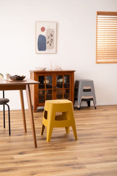 斬新で可愛らしいデザインが魅力のMITASインテリア ペポ スツール。シンプルでありながら存在感を放つイエローカラーは、お部屋のアクセントにピッタリです。使い勝手も抜群で、軽量なので移動も楽々。座面にはクッション性のある素材を使用しているので、長時間座っていても快適です。