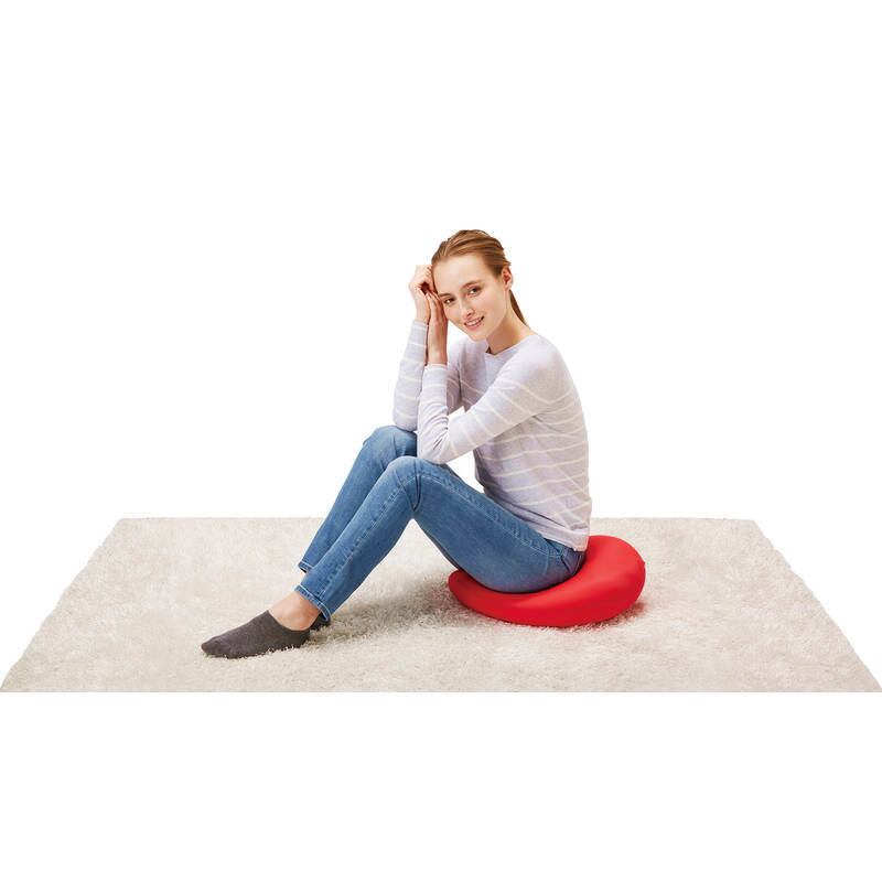 座り姿勢によるおしりや腰、背中の痛み・歪みに。イスにもソファにもちょうどいい、こだわりの大きさとフォルム。前方は低く、後方が高いホールクッションは、約8°の傾斜ができ、この傾斜が骨盤の位置を調整し、無理なく背筋が伸びた姿勢が取れます。