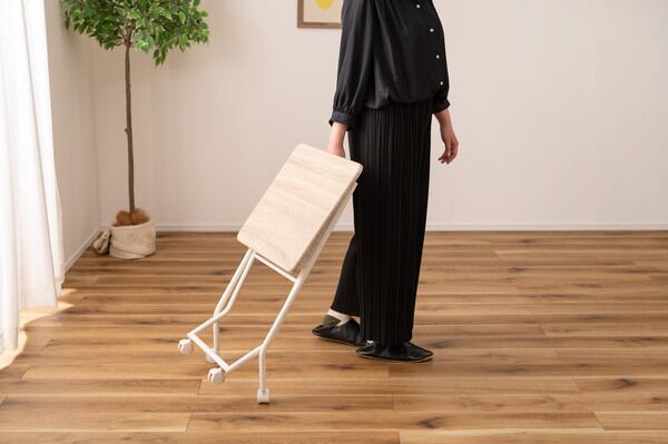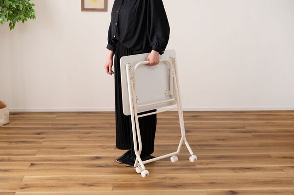 MITASインテリアのキャスター付フォールディングテーブルは、使い勝手抜群の便利な家具です。コンパクトなサイズから広げるとしっかりとしたテーブルとして使用でき、折りたたむと場所を取らずに収納可能。キャスター付きなので移動もラクラクです。