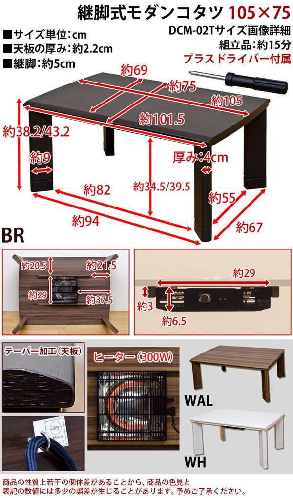 ### 継脚式 モダンコタツ 105×75 BR/WAL/WH