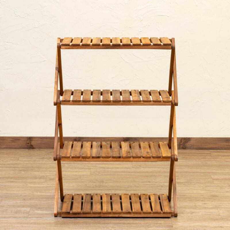 この折り畳みラックは、ナチュラルなアカシアの風合いが特徴で、どんなインテリアにも溶け込むデザインです。4段の広々とした棚は、様々なアイテムをしっかりと収納でき、使い勝手の良い構造となっています。特に、使わない時には簡単に折り畳めるので、スペースを有効活用できます。