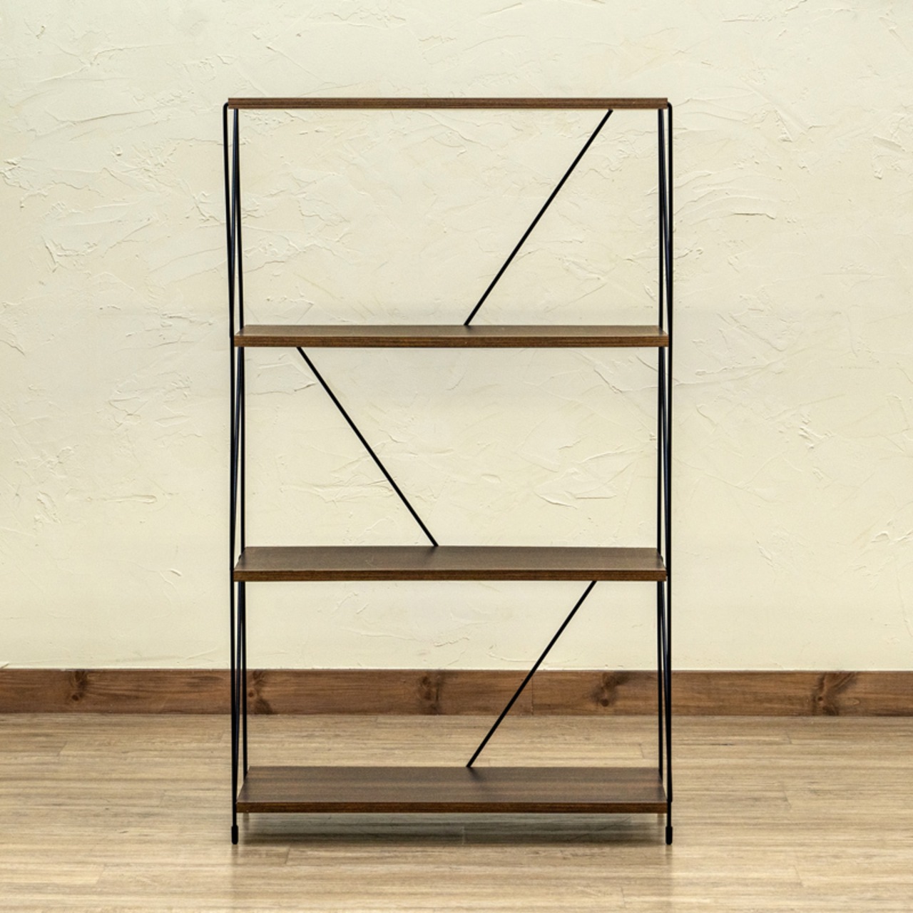 このラックは、ナチュラル(NA)とウォルナット(WAL)の2カラー展開があり、どんなインテリアにも調和し、温かみのある雰囲気を醸し出します。4段の棚は、雑貨や書籍、植物などのディスプレイに最適で、心地よい空間を作り出します。シンプルなラインと洗練された素材が、美しさと機能性を兼ね備えた空間を実現します。