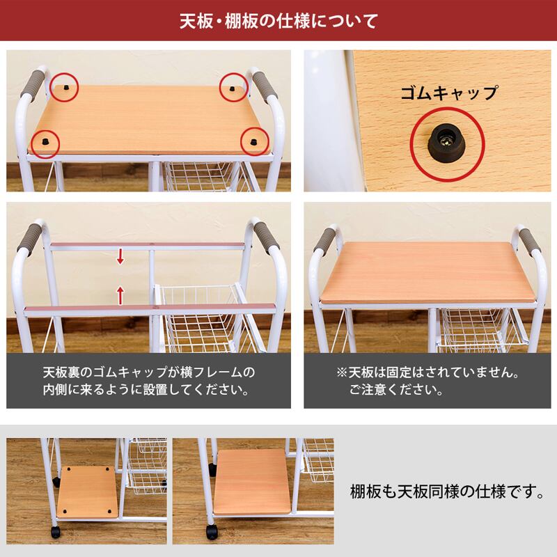 ### カゴ・棚付きキッチンワゴン BE/WAL