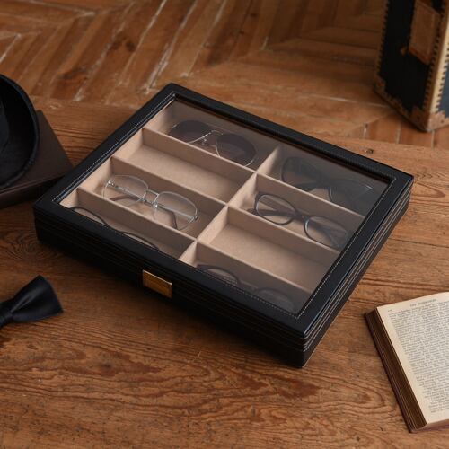 8本のメガネをしっかりと収納できるため、お気に入りのメガネをスマートにまとめて展示できます。内部は柔らかい素材が施されており、大切なメガネを傷から守る安心設計です。また、取り出しやすい構造になっているため、必要な時にすぐにメガネを取り出せるのも嬉しい点です。
