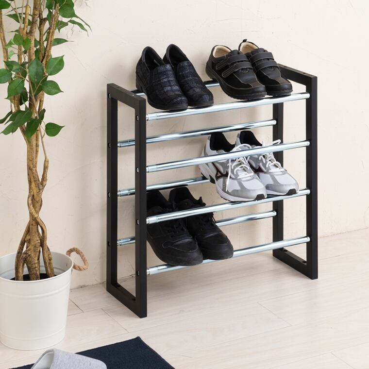 伸縮式シューズラック4段/収納/玄関/エントランス/スリム/モダン/棚/靴/スリッパ/くつ