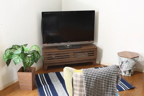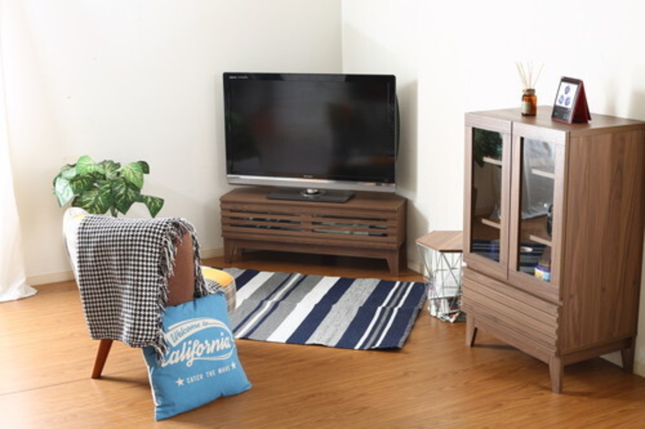 コーナーTV台 ライン MBRは、スタイリッシュなデザインが特徴のテレビ台です!お部屋の角にぴったりとフィットし、空間を有効に活用することができます。
