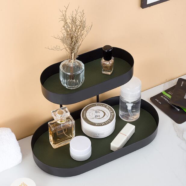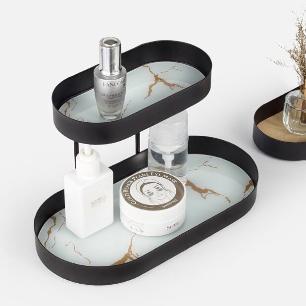 楕円形 2段小物トレイ シェルフ 円形 化粧品収納 ディスプレイ シックな装飾 インスタ映え ラック
