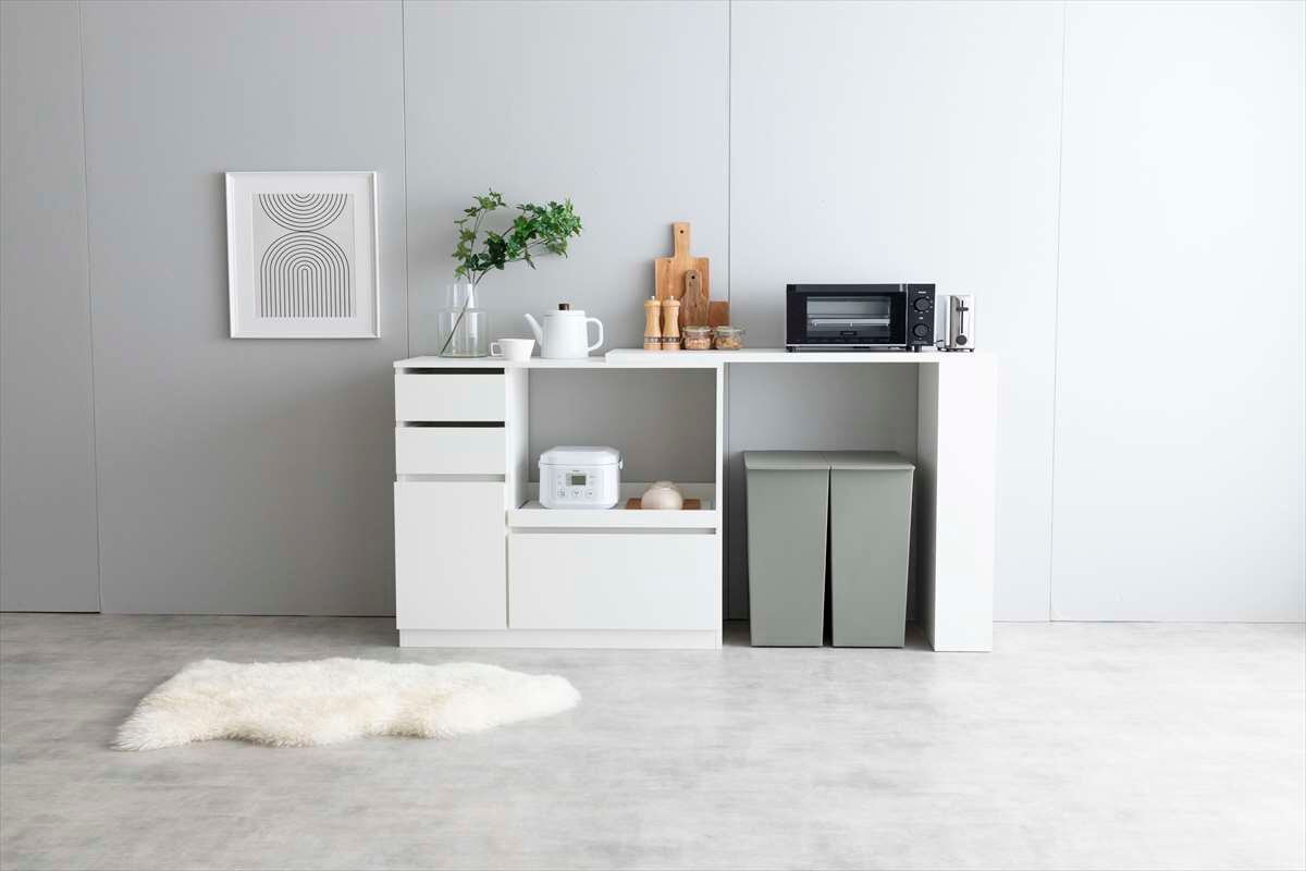 デザイン性と機能性を兼ね備えた【幅100?154cm】Cyrus 伸縮スライド台付きキッチンカウンターで、理想のキッチン空間を実現しましょう。
