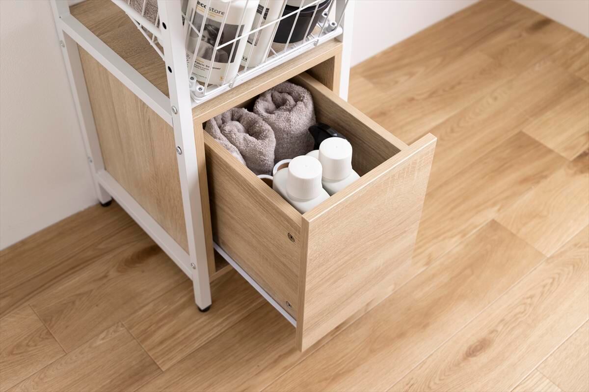*引き出し付きの便利なデザインが、日常の収納をスマートにサポートします。