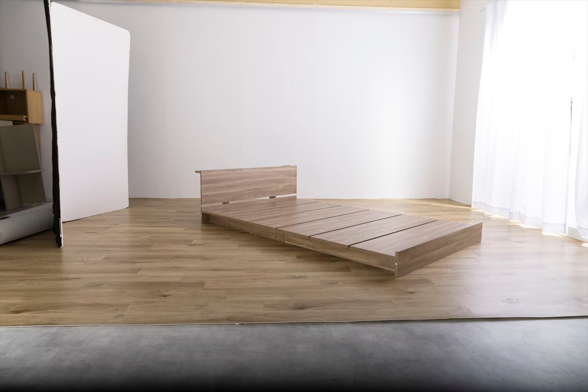 このローベッドは、すのこ構造によって優れた通気性を確保し、湿気を軽減する工夫がされています。ヘッドボード付きのデザインは、読書やスマートフォン操作など、リラックスタイムをより快適にするためのサポートを提供します。また、低床型のデザインが圧迫感を軽減し、開放感のある空間を実現します。