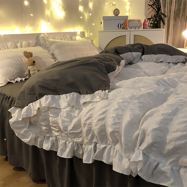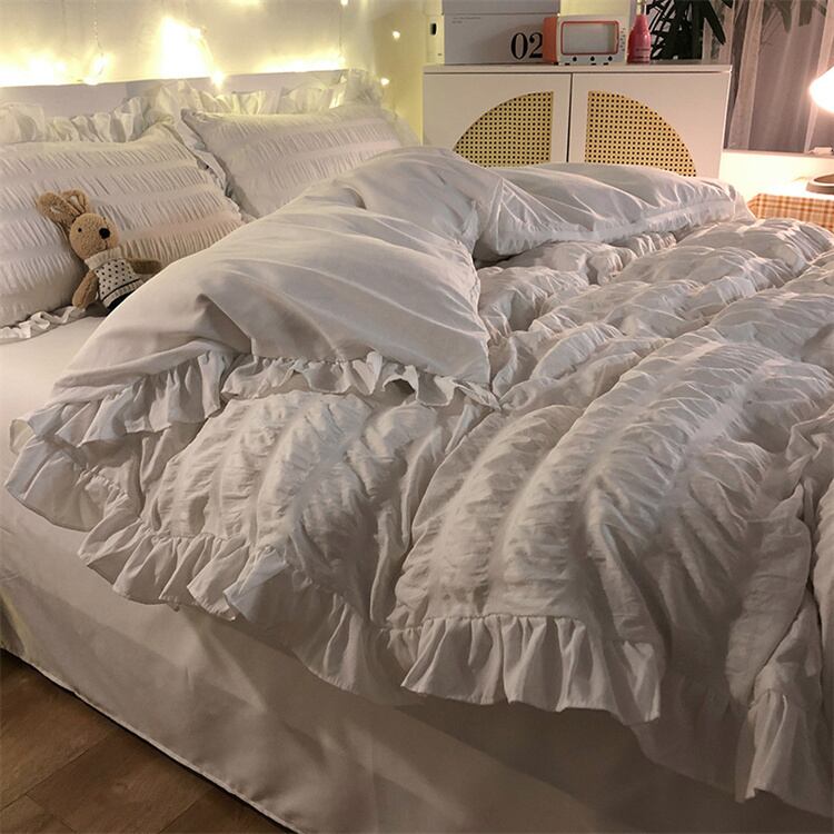 格好いい 寝具 ウォッシュドコットン ベッドスカート 4点セット 夏 シーツ 掛け布団カバー ドミトリー