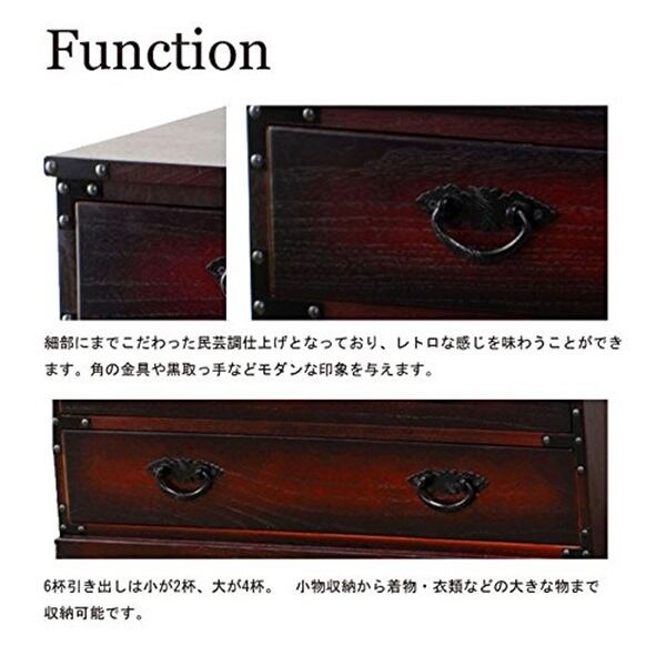このチェストの特長は、卓越した収納力です。洋服や小物を整理整頓しやすく、毎日の生活を快適にサポートします。また、耐久性に優れた素材を使用し、長期間にわたり安心してご利用いただけるのも魅力です。さらに、お手入れが容易で、忙しい毎日でも気軽に利用できる設計になっています。