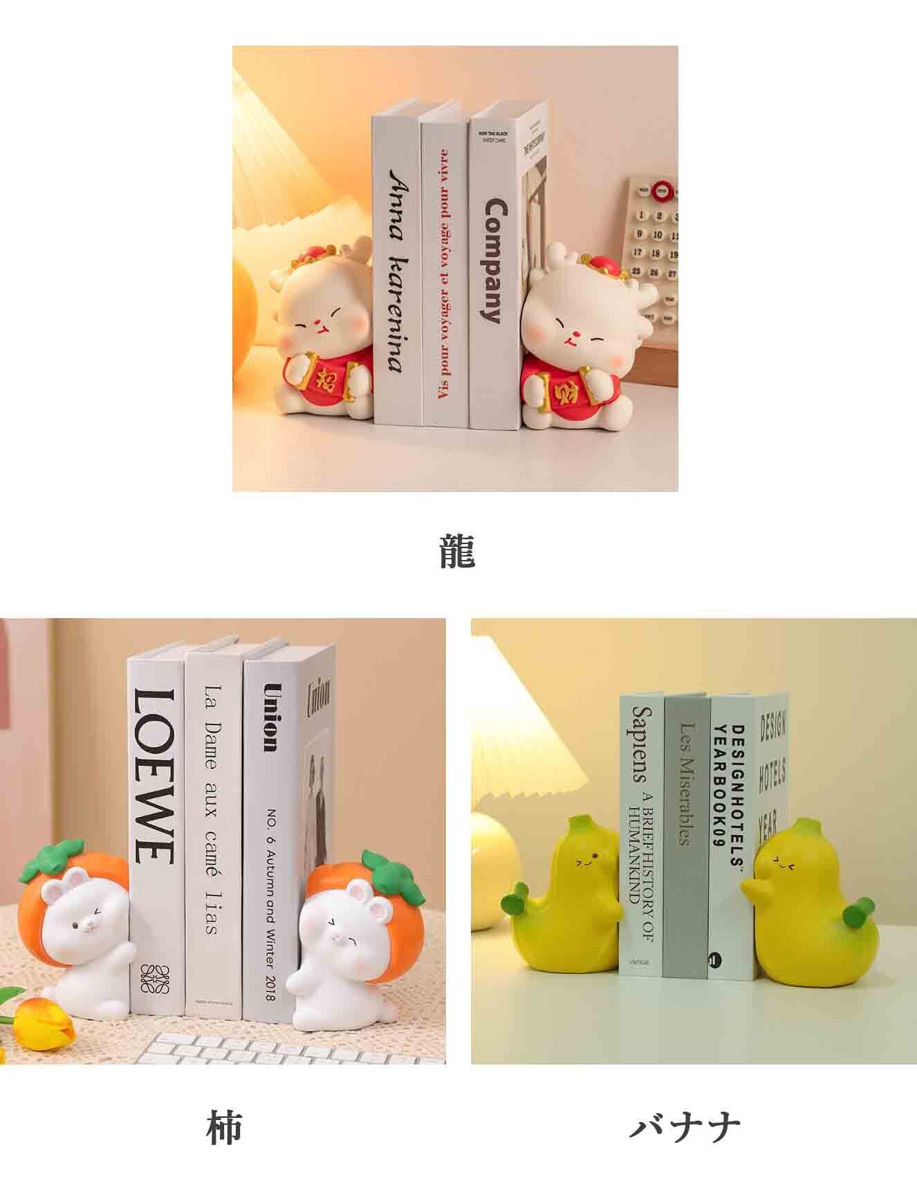 龍 ブックエンド 辰オブジェ フルーツモチーフ ブックスタンド 本棚 収納 事務用品 収納 卓上 本たて
