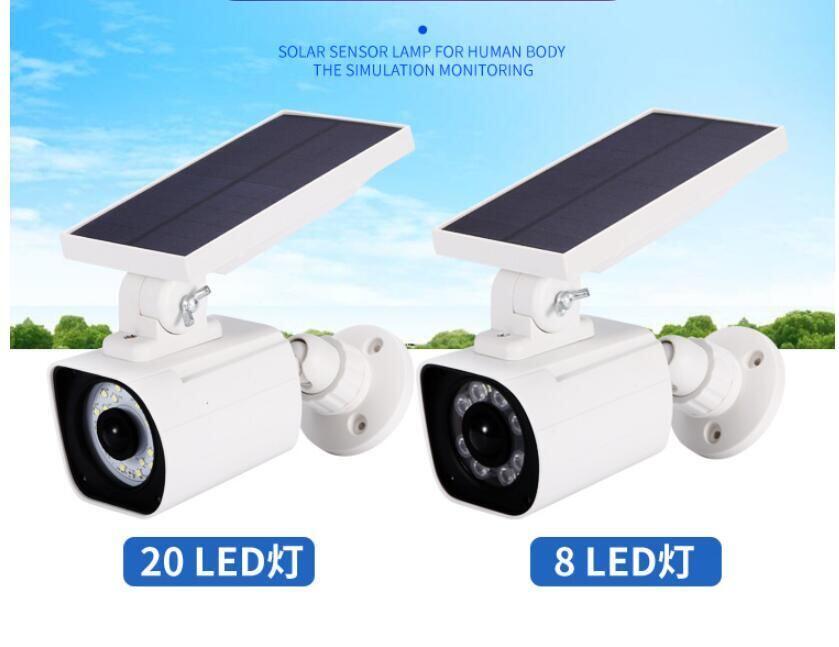 人感 センサーライト 屋外 ソーラー 赤いランプ付き 自動夜間点灯 防犯ライト 防犯カメラ型 8LED