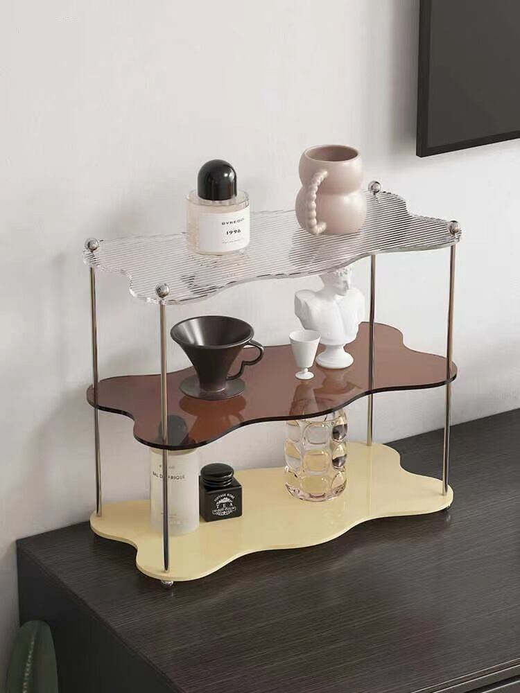 韓国スタイル ウェーブ アクリル シェルフ 化粧品収納 ディスプレイ シックな装飾 インスタ映え ラック (大)3段